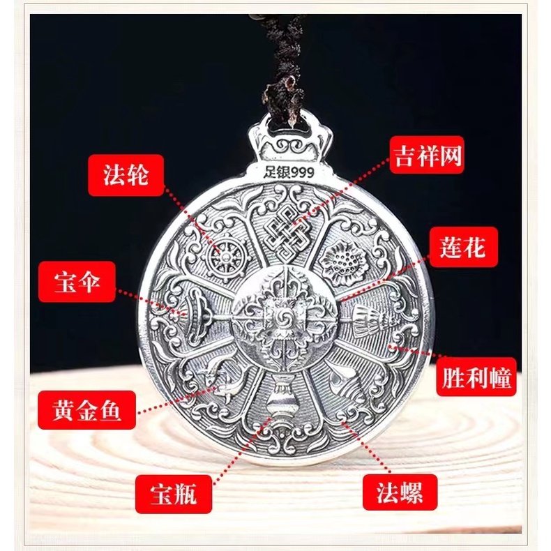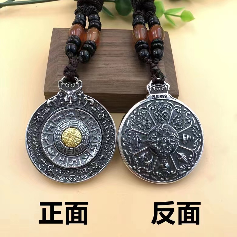 Vintage Jiugongge Pendant Rotatable Pure Silver 999 Sterling Couple