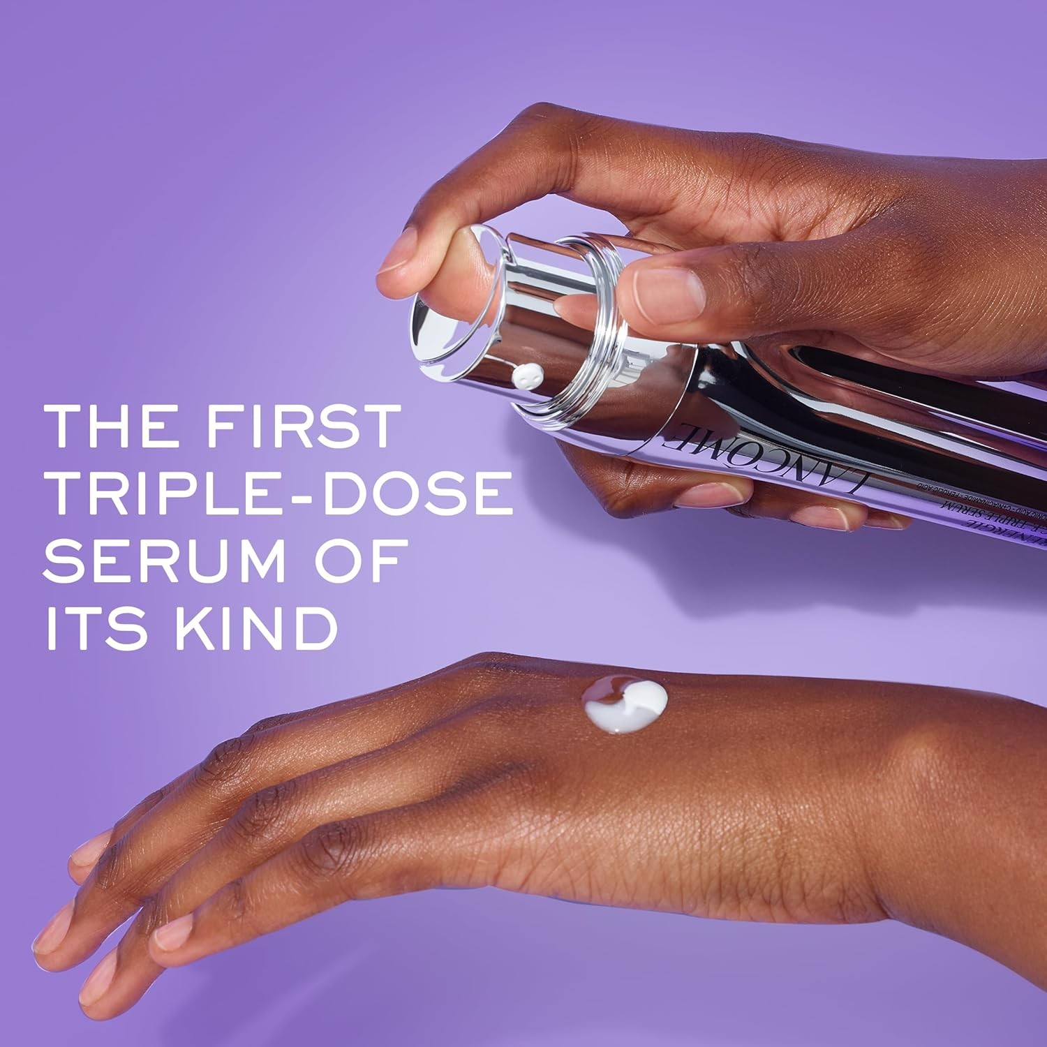 Hold horizontally, dispense 2 pumps until the 3 formulas appear. Mix until blended and apply onto clean skin, morning and night.