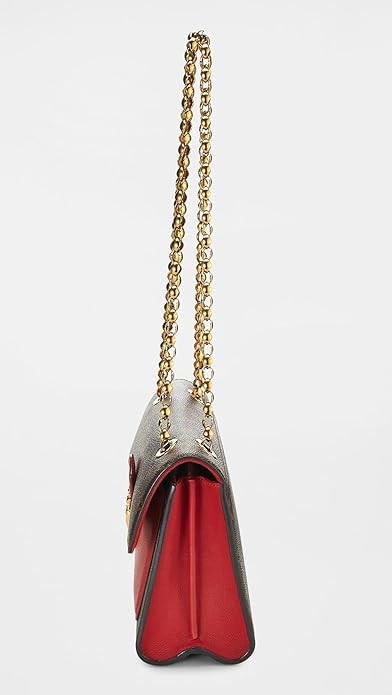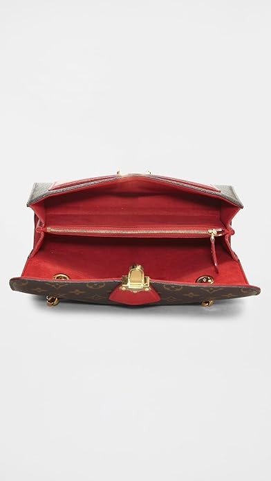 •  Gentle wear should be expected and reinforces the history of this heritage piece, Divided interior with center zip pocket, Monogram logo print, Gold-tone hardware