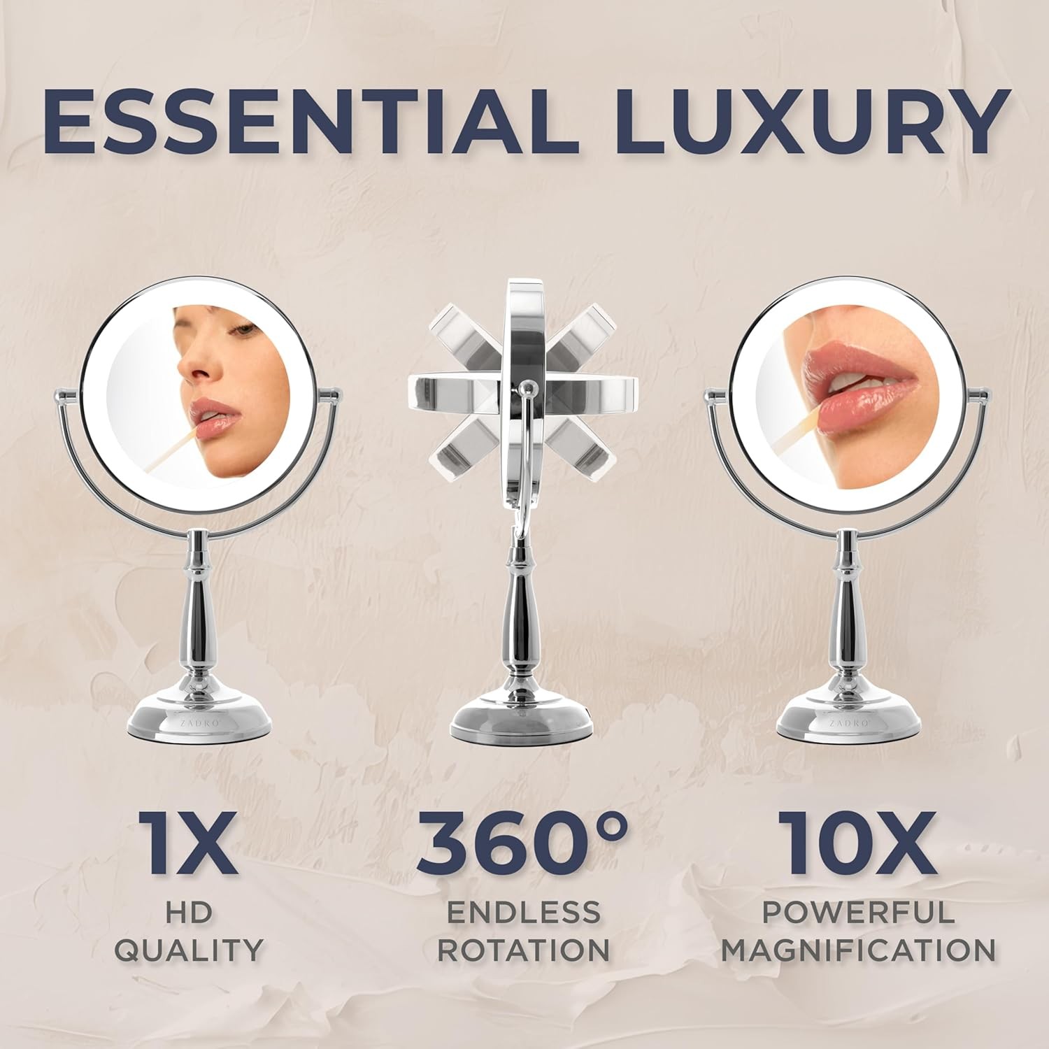 Zadro 11" Makeup Mirror with Lights and Magnification Dimmable Touch LED Lighted Makeup Mirror with Magnification (Large | 11" x 17" | 10X/1X, Chrome)